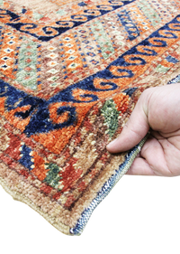 Discover the elegance of our luxury traditional Chobi rug, meticulously handmade using time-honored techniques passed down through generations. This exquisite rug is crafted from 100% premium wool, offering superior softness, durability, and natural warmth. The Chobi design is celebrated for its intricate patterns and harmonious color palette, featuring soothing shades of green and gray that are naturally derived from vegetable dyes. These eco-friendly dyes not only create rich, long-lasting colors but also honor sustainable craftsmanship. Each knot is tied by skilled artisans, ensuring that every detail reflects traditional artistry and cultural heritage. This rug is a perfect blend of authenticity and, destined to elevate any living space with its timeless beauty and exceptional quality. Invest in a piece that carries the legacy of handmade excellence and natural materials, making your home both stylish and environmentally conscious.