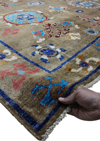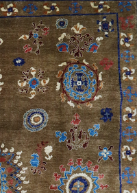 Discover the elegance of our luxury traditional Chobi rug, meticulously handmade using time-honored techniques passed down through generations. This exquisite rug is crafted from 100% premium wool, offering superior softness, durability, and natural warmth. The Chobi design is celebrated for its intricate patterns and harmonious color palette, featuring soothing shades of green and gray that are naturally derived from vegetable dyes. These eco-friendly dyes not only create rich, long-lasting colors but also honor sustainable craftsmanship. Each knot is tied by skilled artisans, ensuring that every detail reflects traditional artistry and cultural heritage. This rug is a perfect blend of authenticity and, destined to elevate any living space with its timeless beauty and exceptional quality. Invest in a piece that carries the legacy of handmade excellence and natural materials, making your home both stylish and environmentally conscious.
