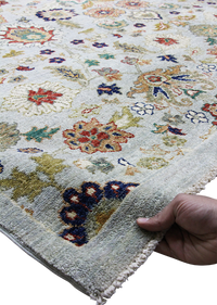Discover the elegance of our luxury traditional Chobi rug, meticulously handmade using time-honored techniques passed down through generations. This exquisite rug is crafted from 100% premium wool, offering superior softness, durability, and natural warmth. The Chobi design is celebrated for its intricate patterns and harmonious color palette, featuring soothing shades of green and gray that are naturally derived from vegetable dyes. These eco-friendly dyes not only create rich, long-lasting colors but also honor sustainable craftsmanship. Each knot is tied by skilled artisans, ensuring that every detail reflects traditional artistry and cultural heritage. This rug is a perfect blend of authenticity and, destined to elevate any living space with its timeless beauty and exceptional quality. Invest in a piece that carries the legacy of handmade excellence and natural materials, making your home both stylish and environmentally conscious.
