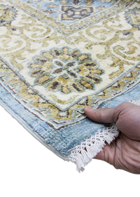 This exquisite rug is a true masterpiece, crafted with meticulous care and dedication. Made from the highest quality wool, it offers exceptional durability and a luxuriously soft texture underfoot. Each rug is handmade by skilled artisans, ensuring that every piece is unique and showcases fine craftsmanship. This rug is made with 100% vegetable dyes, providing vibrant, natural colors that are both eco-friendly and safe for your home. The vegetable dyeing process enhances the wool’s natural beauty, creating rich, earthy tones that complement any decor. This rug not only adds warmth and elegance to your living space but also reflects a commitment to sustainable and ethical production practices. Perfect for those who appreciate quality, artistry, and environmental responsibility, this rug is an enduring addition to your home that blends tradition with modern sensibility.