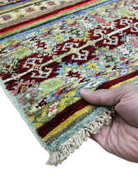 Experience the unique charm of a Khorjin rug, traditionally handmade by skilled artisans in the tribal regions of Iran and Central Asia. Originally crafted as a functional bag for carrying goods, Khorjin rugs are renowned for their bold, geometric patterns and vibrant colors, reflecting the rich cultural heritage of nomadic weavers. Each rug is woven using high-quality wool with meticulous hand-knotting techniques that ensure durability and intricate design. What makes Khorjin rugs special is their authentic tribal artistry combined with practical origins, offering a distinctive blend of rustic beauty and cultural significance. Perfect for adding a touch of history and warmth to any space, a genuine Khorjin rug is a cherished piece of nomadic tradition.