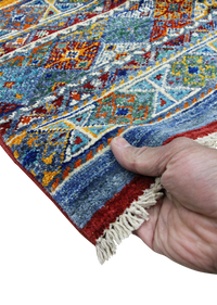 Experience the unique charm of a Khorjin rug, traditionally handmade by skilled artisans in the tribal regions of Iran and Central Asia. Originally crafted as a functional bag for carrying goods, Khorjin rugs are renowned for their bold, geometric patterns and vibrant colors, reflecting the rich cultural heritage of nomadic weavers. Each rug is woven using high-quality wool with meticulous hand-knotting techniques that ensure durability and intricate design. What makes Khorjin rugs special is their authentic tribal artistry combined with practical origins, offering a distinctive blend of rustic beauty and cultural significance. Perfect for adding a touch of history and warmth to any space, a genuine Khorjin rug is a cherished piece of nomadic tradition.