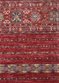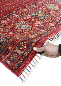 Experience the unique charm of a Khorjin rug, traditionally handmade by skilled artisans in the tribal regions of Iran and Central Asia. Originally crafted as a functional bag for carrying goods, Khorjin rugs are renowned for their bold, geometric patterns and vibrant colors, reflecting the rich cultural heritage of nomadic weavers. Each rug is woven using high-quality wool with meticulous hand-knotting techniques that ensure durability and intricate design. What makes Khorjin rugs special is their authentic tribal artistry combined with practical origins, offering a distinctive blend of rustic beauty and cultural significance. Perfect for adding a touch of history and warmth to any space, a genuine Khorjin rug is a cherished piece of nomadic tradition.