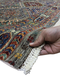 Experience the unique charm of a Khorjin rug, traditionally handmade by skilled artisans in the tribal regions of Iran and Central Asia. Originally crafted as a functional bag for carrying goods, Khorjin rugs are renowned for their bold, geometric patterns and vibrant colors, reflecting the rich cultural heritage of nomadic weavers. Each rug is woven using high-quality wool with meticulous hand-knotting techniques that ensure durability and intricate design. What makes Khorjin rugs special is their authentic tribal artistry combined with practical origins, offering a distinctive blend of rustic beauty and cultural significance. Perfect for adding a touch of history and warmth to any space, a genuine Khorjin rug is a cherished piece of nomadic tradition.