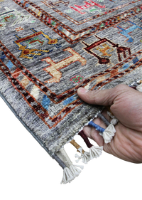 Experience the unique charm of a Khorjin rug, traditionally handmade by skilled artisans in the tribal regions of Iran and Central Asia. Originally crafted as a functional bag for carrying goods, Khorjin rugs are renowned for their bold, geometric patterns and vibrant colors, reflecting the rich cultural heritage of nomadic weavers. Each rug is woven using high-quality wool with meticulous hand-knotting techniques that ensure durability and intricate design. What makes Khorjin rugs special is their authentic tribal artistry combined with practical origins, offering a distinctive blend of rustic beauty and cultural significance. Perfect for adding a touch of history and warmth to any space, a genuine Khorjin rug is a cherished piece of nomadic tradition.