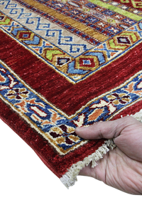 Experience the unique charm of a Khorjin rug, traditionally handmade by skilled artisans in the tribal regions of Iran and Central Asia. Originally crafted as a functional bag for carrying goods, Khorjin rugs are renowned for their bold, geometric patterns and vibrant colors, reflecting the rich cultural heritage of nomadic weavers. Each rug is woven using high-quality wool with meticulous hand-knotting techniques that ensure durability and intricate design. What makes Khorjin rugs special is their authentic tribal artistry combined with practical origins, offering a distinctive blend of rustic beauty and cultural significance. Perfect for adding a touch of history and warmth to any space, a genuine Khorjin rug is a cherished piece of nomadic tradition.