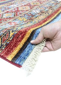Experience the unique charm of a Khorjin rug, traditionally handmade by skilled artisans in the tribal regions of Iran and Central Asia. Originally crafted as a functional bag for carrying goods, Khorjin rugs are renowned for their bold, geometric patterns and vibrant colors, reflecting the rich cultural heritage of nomadic weavers. Each rug is woven using high-quality wool with meticulous hand-knotting techniques that ensure durability and intricate design. What makes Khorjin rugs special is their authentic tribal artistry combined with practical origins, offering a distinctive blend of rustic beauty and cultural significance. Perfect for adding a touch of history and warmth to any space, a genuine Khorjin rug is a cherished piece of nomadic tradition.