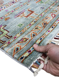 Experience the unique charm of a Khorjin rug, traditionally handmade by skilled artisans in the tribal regions of Iran and Central Asia. Originally crafted as a functional bag for carrying goods, Khorjin rugs are renowned for their bold, geometric patterns and vibrant colors, reflecting the rich cultural heritage of nomadic weavers. Each rug is woven using high-quality wool with meticulous hand-knotting techniques that ensure durability and intricate design. What makes Khorjin rugs special is their authentic tribal artistry combined with practical origins, offering a distinctive blend of rustic beauty and cultural significance. Perfect for adding a touch of history and warmth to any space, a genuine Khorjin rug is a cherished piece of nomadic tradition.