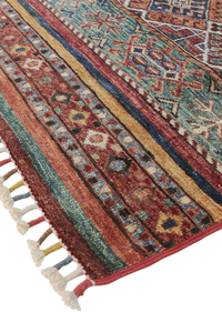 Experience the unique charm of a Khorjin rug, traditionally handmade by skilled artisans in the tribal regions of Iran and Central Asia. Originally crafted as a functional bag for carrying goods, Khorjin rugs are renowned for their bold, geometric patterns and vibrant colors, reflecting the rich cultural heritage of nomadic weavers. Each rug is woven using high-quality wool with meticulous hand-knotting techniques that ensure durability and intricate design. What makes Khorjin rugs special is their authentic tribal artistry combined with practical origins, offering a distinctive blend of rustic beauty and cultural significance. Perfect for adding a touch of history and warmth to any space, a genuine Khorjin rug is a cherished piece of nomadic tradition.