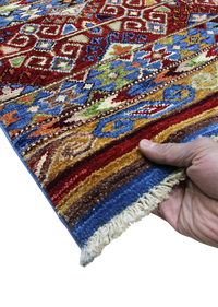 Experience the unique charm of a Khorjin rug, traditionally handmade by skilled artisans in the tribal regions of Iran and Central Asia. Originally crafted as a functional bag for carrying goods, Khorjin rugs are renowned for their bold, geometric patterns and vibrant colors, reflecting the rich cultural heritage of nomadic weavers. Each rug is woven using high-quality wool with meticulous hand-knotting techniques that ensure durability and intricate design. What makes Khorjin rugs special is their authentic tribal artistry combined with practical origins, offering a distinctive blend of rustic beauty and cultural significance. Perfect for adding a touch of history and warmth to any space, a genuine Khorjin rug is a cherished piece of nomadic tradition.