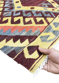 A Kilim rug is a distinctive, flat-woven textile traditionally crafted in regions spanning Turkey, Iran, the Caucasus, and parts of Central Asia. Unlike pile rugs, Kilims are made without knots, using a unique weaving technique that produces a thin, reversible fabric with bold geometric patterns and vibrant colors. This flatweave method not only sets Kilims apart from other rugs but also makes them lightweight and durable.