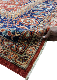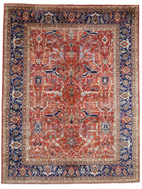 Serapi rugs originate from the Serapi village near Herat in western Afghanistan, renowned for producing some of the most exquisite and sought-after tribal rugs. Famous for their bold, dramatic designs, Serapi rugs feature large-scale medallions, intricate floral motifs, and a striking color palette dominated by deep reds, blues, and ivory. Serapi pieces combine the boldness of tribal motifs with the sophistication of Persian artistry, resulting in a harmonious blend of strength and elegance. Their slightly distressed, antique appearance often adds character and depth, making each rug unique. Serapi rugs are prized for their artistic expression, historical significance, and ability to serve as stunning focal points in both classic and contemporary interiors, embodying timeless beauty and cultural richness.