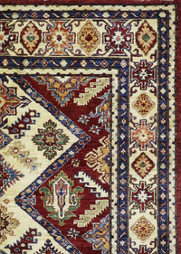 Discover the exquisite charm of our Super Kazak rug, a masterpiece handmade by skilled artisans in the Caucasus region in what is now today Armenia and Azerbaijan. Traditionally crafted using time-honored weaving techniques, each rug showcases bold geometric patterns and vibrant colors, characteristic of Kazak heritage. Woven from high-quality wool, the Super Kazak rug offers exceptional durability and a plush texture that stands out from other rugs. Its unique combination of striking design, rich symbolism, and superior craftsmanship makes it a distinguished piece that adds character and warmth to any interior. Embrace the cultural legacy and timeless beauty of a genuine Super Kazak rug, perfect for those who appreciate authentic artistry.