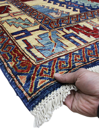 Discover the exquisite charm of our Super Kazak rug, a masterpiece handmade by skilled artisans in the Caucasus region in what is now today Armenia and Azerbaijan. Traditionally crafted using time-honored weaving techniques, each rug showcases bold geometric patterns and vibrant colors, characteristic of Kazak heritage. Woven from high-quality wool, the Super Kazak rug offers exceptional durability and a plush texture that stands out from other rugs. Its unique combination of striking design, rich symbolism, and superior craftsmanship makes it a distinguished piece that adds character and warmth to any interior. Embrace the cultural legacy and timeless beauty of a genuine Super Kazak rug, perfect for those who appreciate authentic artistry.