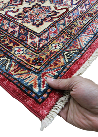 Discover the exquisite charm of our Super Kazak rug, a masterpiece handmade by skilled artisans in the Caucasus region in what is now today Armenia and Azerbaijan. Traditionally crafted using time-honored weaving techniques, each rug showcases bold geometric patterns and vibrant colors, characteristic of Kazak heritage. Woven from high-quality wool, the Super Kazak rug offers exceptional durability and a plush texture that stands out from other rugs. Its unique combination of striking design, rich symbolism, and superior craftsmanship makes it a distinguished piece that adds character and warmth to any interior. Embrace the cultural legacy and timeless beauty of a genuine Super Kazak rug, perfect for those who appreciate authentic artistry.
