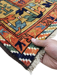 This exquisite rug is a true masterpiece, crafted with meticulous care and dedication. Made from the highest quality wool, it offers exceptional durability and a luxuriously soft texture underfoot. Each rug is handmade by skilled artisans, ensuring that every piece is unique and showcases fine craftsmanship. This rug is made with 100% vegetable dyes, providing vibrant, natural colors that are both eco-friendly and safe for your home. The vegetable dyeing process enhances the wool’s natural beauty, creating rich, earthy tones that complement any decor. This rug not only adds warmth and elegance to your living space but also reflects a commitment to sustainable and ethical production practices. Perfect for those who appreciate quality, artistry, and environmental responsibility, this rug is an enduring addition to your home that blends tradition with modern sensibility.